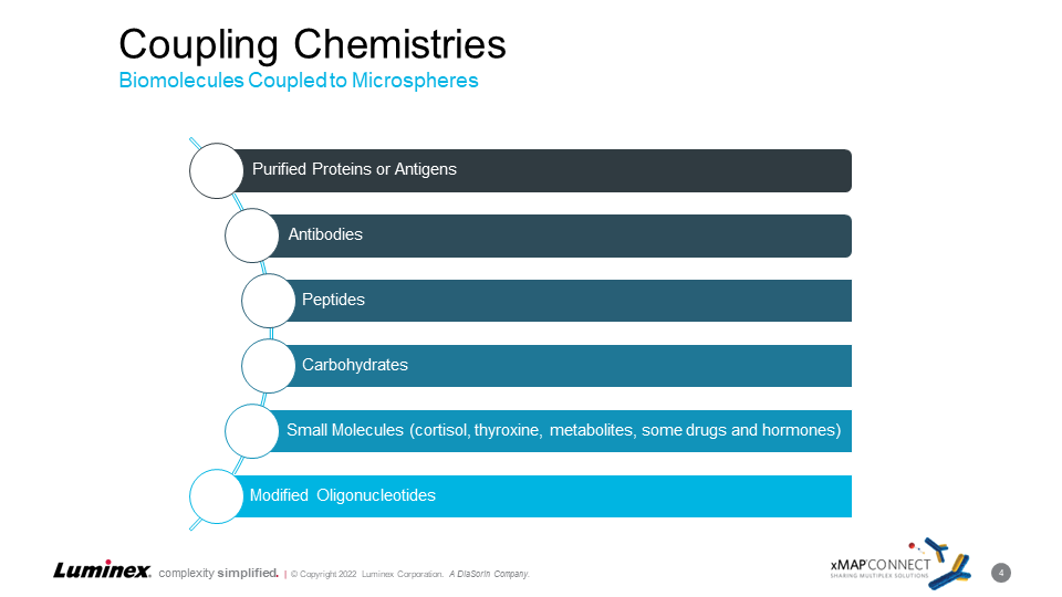 xMAP Connect attendees also gained valuable time with our team’s technical experts. Stephen Angeloni, a Senior Field Application Scientist at Luminex, offered a deep dive into the technical considerations for bead coupling. Examples of molecules suitable for coupling include purified proteins or antigens, peptides, small molecules, and carbohydrates.